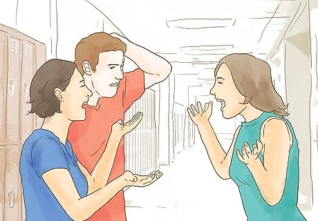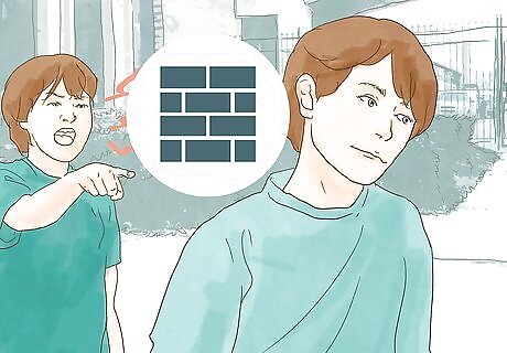 Don't react to the bully. Most of the time, people bully because they want to get a reaction from you. Homophobic bullies try to use your sexual orientation as a way to upset you and make themselves feel better about something they don’t understand. Deal with it by not giving them the satisfaction of a response. Responding to the bully when you are upset could cause you to say or do something that could make the situation worse, like getting into a physical altercation. Don’t react even if you aren’t homosexual and the bully is saying that you are. Denying it will give the bully a reason to continue bothering you. If you haven’t come out yet, reacting to the bully might cause you to accidentally out yourself out of anger. Just walk past them and ignore their comments and taunts. If you can’t walk away, then turn your attention to something else. If the bullying is happening online, you still shouldn’t respond. Posting a response could make the situation worse. Block the bully or hide their posts on your feed. It may also help to stop using social media altogether for a while.