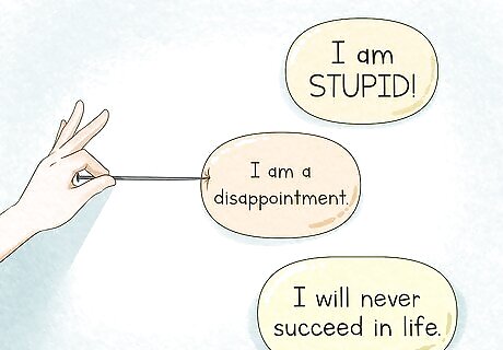 Understand the benefits of addressing your thoughts out loud. In addition to writing and thinking about your negative thoughts, addressing your thoughts out loud can also help you to deal with your negative thoughts. Using positive self-talk to address negative thoughts can help to change your perspective and help you to become less critical of yourself over time.