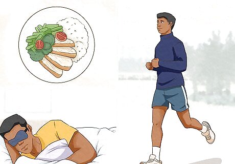 Take care of yourself. Taking good care of yourself can help you to deal with negative thoughts as well. Eating well, getting enough sleep, and exercising regularly can help you feel better mentally and physically. Make sure that you are eating well, sleeping enough, and getting regular exercise to feel your best. Try to eat a balanced diet that include plenty of fresh fruits and vegetables, whole grains, and lean protein. Avoid junk food, as well as excess sugar and fat. Get between 7-8 hours of sleep per night. Keep in mind that this is only the recommendation for adults. Some people may be okay with less than 7 hours or require more than 8 hours of sleep per night. Exercise for 30 minutes three times a week. Even a 30-minute walk, or two 15-minute strolls, can count.