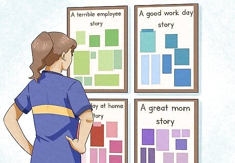 Identify your "stories." Negative thoughts have patterns that can be made less disruptive if you label them according to what kind of story they tell. In other words, you may have a variety of different thoughts that all boil down to the same basic meaning. Figure out the patterns of your negative thoughts and label them. This can help you to let them go. For example, if you tend to say to yourself, "I am bad at my job," you can say to yourself, "Oh, this is my ‘I’m a terrible employee’ story." Framing a thought this way will help to remind you that you often have these types of thoughts.