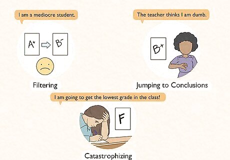 Keep a thought record to better understand what motivates your negative thoughts. Journaling about your negative thoughts may help you start to understand them and deal with them. Start by writing down an event that you wish had gone differently or that you think you could have handled better. When possible track your feelings about the event as well. For example, you might record something like, “I did poorly on the English test. I felt anxious before the test because it reminded me of another time that I failed a test.”