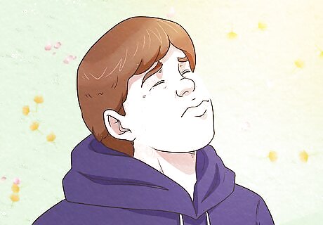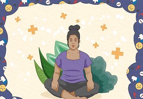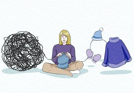 Distract yourself with positive activities. Keeping busy gives you less time to dwell on your thoughts and can also remind you of the things you enjoy. Look for activities that you enjoy or try something new. For example, you could: Go for a jog: this tires your mind and helps reduce stress through physical activity. Take a walk somewhere you enjoy, like a park. Watch a funny movie or TV show, read a funny book, or listen to a podcast of a favorite radio show. Spend time with a friend, family member, or social community. Staying connected with others can help you feel more positive and turn your mind away from yourself.