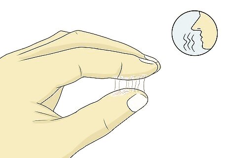 Check for sticky vaginal discharge with a metallic smell. It’s normal to have a little discharge from your vagina even when you’re not having your period. However, the bleeding and discharge you get during your period feels and smells different. Watch out for discharge that feels slightly sticky and has a faint, metallic scent. Your period discharge will also eventually become much heavier than your regular discharge, although it may be very light during the first 1-2 days of your period. If you have some sight, you may be able to see that your discharge looks dark brown or red when your period starts.