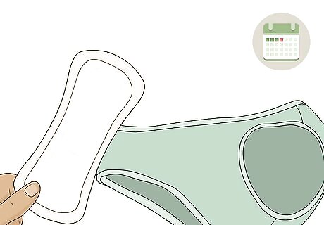 Change your pads or tampons on a regular schedule. After a while, you’ll probably get a sense of how often you need to change your pad or tampon. However, if you’re not sure what to feel for yet, it can be helpful to change your period products regularly to prevent overflows and leaks. For example, try changing your pad once every 4 hours.Warning: Wearing a tampon for too long can put you at risk of developing a rare but dangerous condition called toxic shock syndrome. Never wear a tampon for more than 8 hours. Depending on how heavy your flow is, you may need to change your period products more frequently. If you use tampons, it can be helpful to wear a light pad or pantyliner at the same time to prevent leaks.