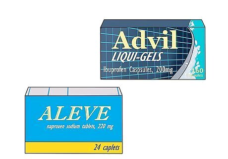 Try over-the-counter pain medications to manage cramps. If you get a lot of pain with your periods, non-steroidal anti-inflammatory drugs (NSAIDs) can help. Try using a medication such as naproxen (Aleve) or ibuprofen (Motrin, Advil) to take the edge off your cramps. Be sure to keep your medications organized and get a sense of what the pills feel like so that it’s easier for you to recognize them. Tip: A gentle massage can sometimes help relieve period cramps. Gently press or rub on your abdomen, or ask a friend to do it. Heat can also bring relief from period cramps. Try soaking in a warm bath or holding a hot water bottle or heating pad against your abdomen or lower back.