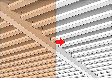 Paint the exposed rafters in the ceiling white. Painting exposed joists white will make the ceilings appear higher. You can also draw attention away from pipes or ducts that run along the ceiling by painting them white, too.