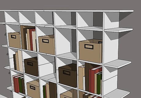 Fill empty walls with inexpensive white bookcases. Purchase modular bookcases or paint an assortment of secondhand bookcases white. Arrange them across your basement's walls to conceal bare cinder blocks and impart a clean, custom look. If you want to paint them a color other than white, go for a lighter shade. Light colors will help expand and brighten the space. Display books, knick-knacks, and decorative objects on the bookcases to make the space feel more homey.