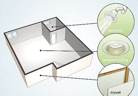 Set your priorities and plan a budget. List your wants and needs in order of importance. Estimate each item's cost, add them to find the total cost, and compare that figure with your savings, lines of credit, or other means of paying for the project. Estimate costs for a few scenarios: total your must-have priorities, create a plan with your needs plus a few wants, and estimate how much your ideal basement would cost. For instance, drywall might be a must, a ceiling with recessed lighting could be a plus, and adding a bathroom might be ideal. Labor and material costs vary by location, but you can search online for calculators that offer rough estimates. If you want to finish your basement, try to include a 15 to 20 percent contingency in your budget. If you have limited savings, you can also see if you qualify for a home improvement loan.