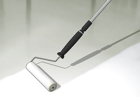 Seal or paint concrete basement floors. If adding a subfloor and carpeting or tile isn't in your budget, seal the floors with 2 to 3 coats of epoxy paint. Clear everything out of the space and clean the floors thoroughly first. Use a roller to apply the paint across wide areas and a brush to paint the edges. You could go with a muted gray or brown, or use a more energetic color, like blue or green. Purchase epoxy paint online or at a home improvement store. Read the directions carefully, and mix the paint as directed. Each coat will need time to cure, so check the instructions to see how long you'll need to leave the floor undisturbed.