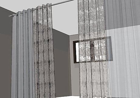 Hang curtains to divide a large space. You could create individual rooms by screwing a curtain track system to a ceiling joist. For an easier, less expensive option, string picture wire across the basement, and hang thrifted curtains or sheets from it. Curtain track systems for dividing rooms are available online and at home improvement stores. A 12 foot (3.7 m) track typically costs around $100.