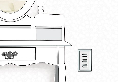 Set up a charging station for your electronics and styling tools. Give yourself easy access to an electrical outlet so you can plug in your phone or tablet while you’re freshening up. Do the same for your hair dryer, curling iron, laptop, speakers, and any other appliances you need to have close at hand. They’ll stay powered up and you’ll eliminate the need to make a million trips back and forth. If open outlets are few and far between, a hidden power strip will make it possible to hook up more devices at once while also economizing the space you have available. Snap a selfie at your dressing table when you’re done fixing yourself up to check out your handiwork!