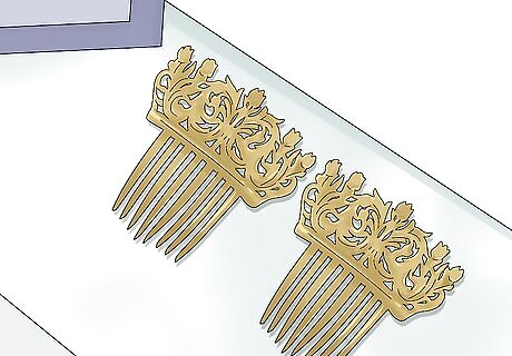 Accessorize with chic antiques. If you’re on the hunt for something eye-catching and out of the ordinary, think throwback. Scour antique malls, flea markets, yard sales, and specialty boutiques to unearth fascinating finds. A clamshell compact, ivory comb, or embossed powder box can complete a vintage-themed vanity and make it feel like a piece of living history. Antiques make an alluring addition to vanities that are mostly meant to be admired from a distance. One of your own cherished family heirlooms could also serve as a unique and meaningful conversation starter.