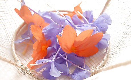 Add fresh or dried petals. You want to save this part till the day of the wedding, preferably right before walking down the aisle if you are using fresh flowers. The number of flowers you place in the basket may depend on the length of the aisle. For example, if it’s a long walk, you will need more petals so the flower girl can throw them out consistently.