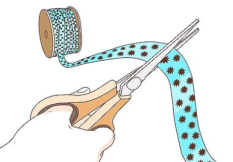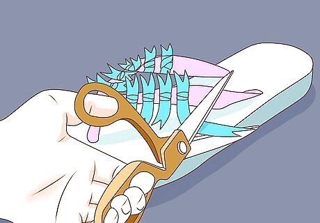 Cut fabric or ribbon into 1 inch (2.5 cm) x 8 inches (20 cm) strips. Choose fabric or ribbon that has a pattern that you like. Use fabric scissors to trim it down to the correct size. Try your best to make all the strips the same size so that your flip-flops look balanced. Cotton, linen, polyester, and velvet fabric all work well for this activity. To completely cover the straps of your flip-flops, you will need about 20 strips.