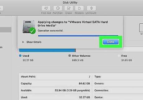 Click Apply. It's in the lower-right corner of the Disk Utility app. This displays a confirmation pop-up.