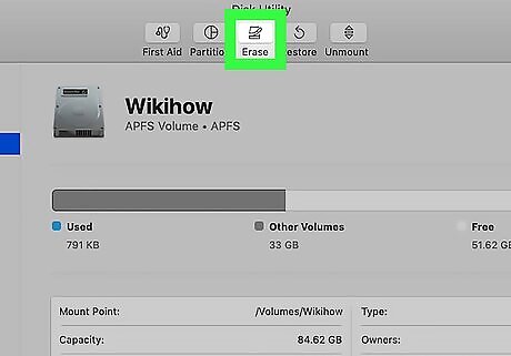 Click Erase. It's at the top of the Disk Utility app. This displays a pop-up.