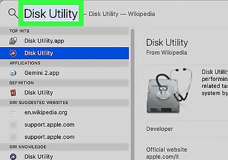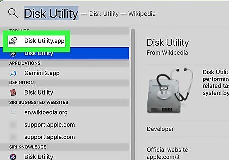Click Disk Utility.app. It's at the top of the list of search results. It's next to an icon that resembles a hard drive with a stethoscope. This opens the Disk Utility app.
