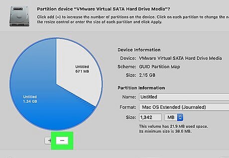 Click -. It's the icon with the minus (-) sign below the pie chart. This removes the partition from the pie chart, allocating the free space to the main drive.