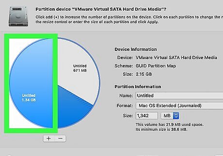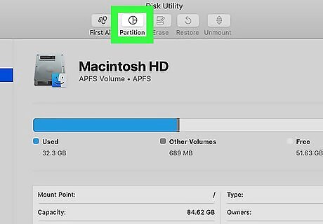Click the Partition tab. It's the second tab at the top of the Disk Utility app. This displays a pie chart with your partitions.