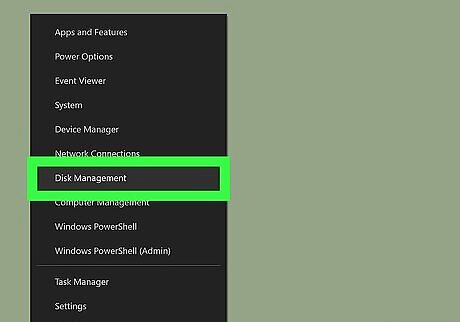 Click Disk Management. It's in the pop-up menu that appears when you right-click the Windows Start menu. This opens the Disk Management app.
