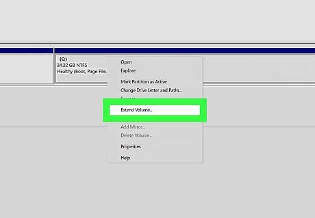 Click Extend drive. It's in the pop-up menu that appears when you right-click on a drive in Disk Management. This opens the Extend Volume Wizard. Alternatively, you can click Format Drive to reformat the unallocated free space as another partition.