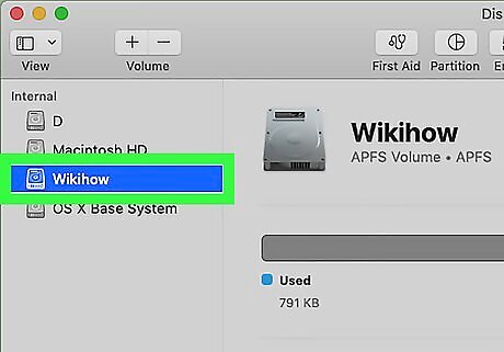 Click the drive you want to delete. The drives are listed in the sidebar to the left of the Disk Utility app.