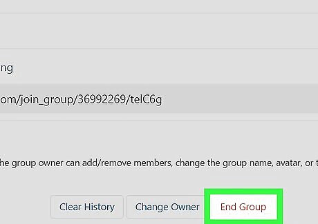 Click End group. It’s at the bottom-right corner of the group’s settings window. A confirmation message will appear.