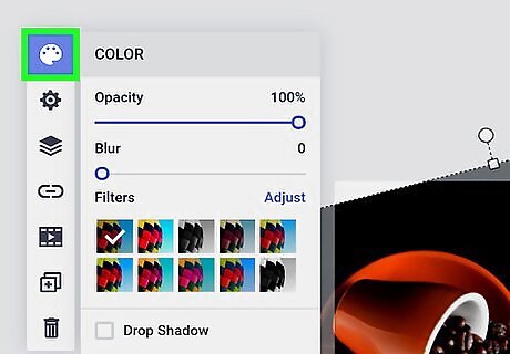 Make use of captivating colors. Switch up the color of a line, shape, or font at any time by highlighting the desired shade on the color pallet. If the color you’re looking for isn’t included in the pallet, double click or hold your finger over the closest option. You’ll be able to pinpoint an exact shade from the full spectrum, then make it lighter or darker until you get the tone just right. Select the paint bucket tool when you need to fill in a large area with a solid color.