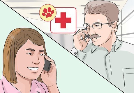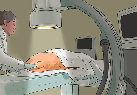 Call your vet immediately. Stomach bloating and torsion in dogs is fatal without treatment. Calling your vet as soon as you are able to identify and detect the symptoms of stomach bloating in your dog will help you determine whether or not your dog needs immediate medical attention. Only your vet or another trained professional will be able to accurately diagnose your dog’s condition. Be sure to give your vet an approximate arrival time so they can be ready to treat your dog immediately. Call your vet and describe symptoms by saying, “I think my dog is suffering from torsion, they are trying to vomit and are displaying anxious behavior” or “My dog’s stomach is very tight and they are not walking around very often.” Remember, only your vet will be able to treat your dog’s bloating or torsion.
