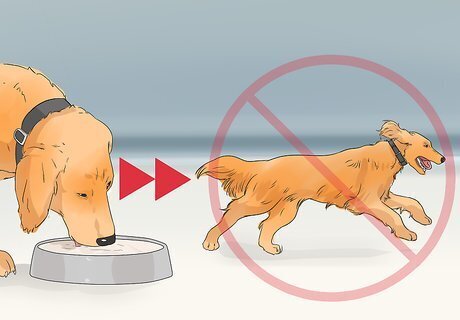 Avoid exercise after meals. Exercising your dog after they have just eaten increases their risk of bloating or torsion as their stomach will be full, heavy, and easier to twist. Give your dog at least 2 hours of digestion time before you take them on a walk or have high energy play. Try feeding your dog an hour after they have exercised to create a simple and healthy feeding routine.