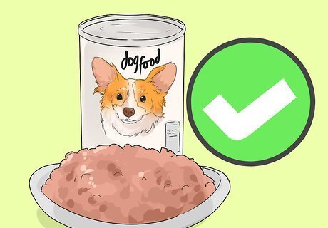 Add high protein wet food to your dog’s meals. Many dry foods can be too rich in carbohydrates and be over processed for dog’s digestive systems. Add high protein wet food to your dog’s meal to increase your dog’s nutrition and digestive activity so that they can naturally decrease their risk of bloat or torsion. Start by supplementing half of your dog’s dry food for wet food. Consult your vet or local pet store about high protein wet foods. Ask questions like, “Which wet foods do you recommend for my dog?” or “Is there a particular food or brand that helps combat bloating and torsion?”