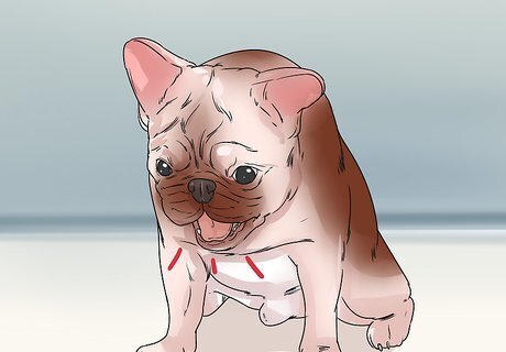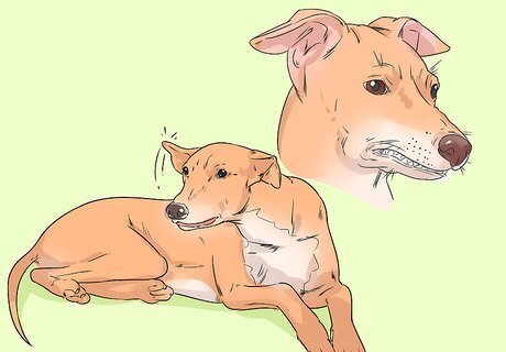 Look for signs of anxiety and restlessness. Many dog’s will be much less active when suffering from bloating and torsion as their stomach will make many movements uncomfortable. Dog’s suffering from bloating and distention might also be hunched or curled over by trying to physically compensate for the discomfort. Try calling your dog over to you if you think your dog is displaying unusual behavior. If they react in a way that is not normal, like slowly limping over or refusing to move, they may be experiencing physical discomfort. Examples of signs of restlessness and anxiety are fidgeting, sighing or whimpering, constant eye movements, furrowed ears, and grimacing.