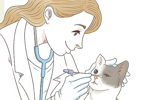 Use antibiotic eye drops. If your cat is experiencing quite a bit of eye discharge as a result of chlamydiosis, your vet might prescribe antibiotic eye drops. As with oral antibiotics, you should follow the directions your vet gives you very carefully.