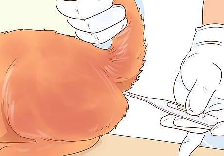Check your cat’s temperature. Every ten minutes, you should use your digital rectal thermometer to check your cat’s temperature. If the cat's temperature reaches 99 Fahrenheit (37.2 Celsius), you can stop actively warming your cat, but do keep the cat in a warm area. Overheating the cat can cause significant health problems.
