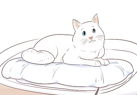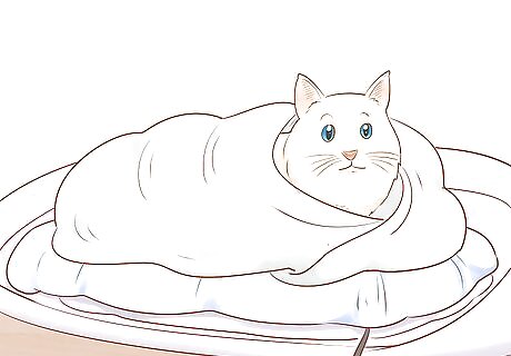 Insulate the surface under your cat. You can use a warm blanket or a cat bed as insulation. One option is to warm a blanket in the tumble dryer and then place it under your cat. If you use an electric blanket, it should be covered with a few layers of blankets or towels so that it does not burn your cat. A microwavable heating pad is another option, as long as you cover it with blankets. If you own a heated cat bed, you should use it. You must supervise the cat on the heated pad or bed, especially if it is comatose or too weak to move. The cat may overheat since it cannot move away when it gets too warm.