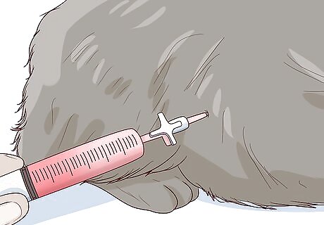 Drain the fluid. When a cat has pyothorax, the first treatment after stabilizing its breathing is to get rid of the fluid causing the problem. Initially, the vet may use a needle to drain some of the fluid and relieve the pressure. However, once the cat is out of immediate danger, the vet will likely place tubes in the chest to flush and drain the chest over several days. Often, hospitalization is required for this procedure. Your cat can come out of the hospital when its chest cavity stops reforming the pus, and the cat is interested in eating on its own. Your vet will likely give your cat pain medications for this procedure.