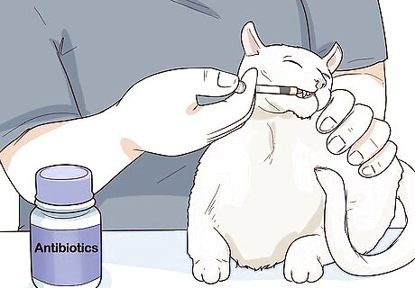 Give antibiotics. Typically, your cat will begin intravenous antibiotics at the clinic or hospital. These infections can run deep, so your cat will need extensive antibiotics, even when you bring it home. At home, you should be able to give oral antibiotics.