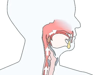 Be aware of coughing. Coughing is the process of roughly exhaling in order to clear the throat or lungs. It is an involuntary action that often accompanies esophageal diverticulum. As a result, you might find your throat becomes sore or your voice becomes hoarse. You might also cough during the night, waking your partner or even yourself. Your coughing might be due to pulmonary aspiration — the movement of foreign material or secretions into the trachea (windpipe) and/or lungs.