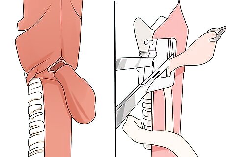 Get surgery. Diverticula may require removal if they are too large or lead to serious symptoms. There are several types of surgical procedures that might be used to treat your esophageal diverticulum. Your doctor will decide which procedure is best for you. The type of surgery required for your particular diverticula depends on its location and size, as well as your own health. Your surgeon will discuss your options with you. If you have small diverticula, you might get a cricopharyngeal myotomy. This procedure requires going in through the mouth to remove diverticula. If you have larger diverticula, your doctor might recommend a diverticulopexy with cricopharyngeal myotomy. In this procedure, the diverticula is turned upside down and then sutured to the esophageal wall. A third surgery option is the diverticulectomy and cricopharyngeal myotomy. If you get this procedure, the surgeon will remove the entire diverticula. The fourth and final surgery option is the endoscopic diverticulotomy (Dohlman procedure). In this surgery, the surgeon slices the diverticula down the middle, allowing food to drain out of it.