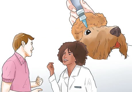 Follow your veterinarian's suggestions for treatment. Treatment of glaucoma is difficult. Caught early, glaucoma can be controlled using drops which decrease the amount of aqueous humor produced. In addition, there are specialist surgical procedures that aid the drainage of fluid from the eye. Your veterinarian will suggest the best treatment based on the progression of the illness and how pain and vision loss can be managed. In late stage glaucoma the eyesight may be too damaged to restore. However, drops can help decrease the pressure and keep the eye comfortable. Alternatively, removing an eye that doesn't have vision anymore can improve the dog's quality of life. Unfortunately, most dogs diagnosed with glaucoma will eventually go blind, even if surgery or medicine lengthen the amount of time they have sight.