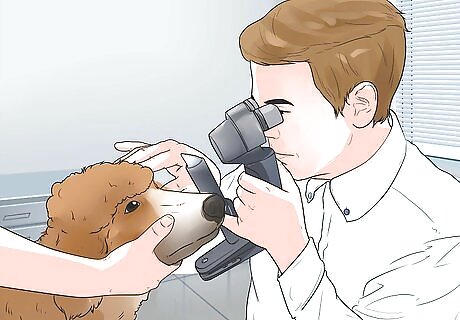 Take your dog in for an exam. The vet will first perform a physical exam of the dog, including checking the appearance of the eyes and making sure that both eyes are the same size. The vet may also gently feel the size of each eyeball through the eyelids, comparing one side with the other to see if there is a difference. The dog's response to this test may also tell the vet if one eye is painful or uncomfortable when compared with the other. The vet will also shine a bright light at the retina to see if the pupil contracts. This will help the clinician determine if the dog is blind or not. The vet may move a fingertip close to the eye to check if the dog sees the threat or not. The vet then examines the internal structure of the eye using an ophthalmoscope. The vet looks for signs of inflammation in the iris, which could provide an explanation for the development of glaucoma. He or she will also look at the drainage angle between the iris and the cornea to see if it is narrow, which is a predisposing factor in the miniature poodle.