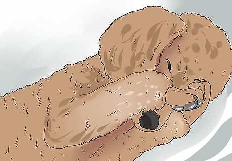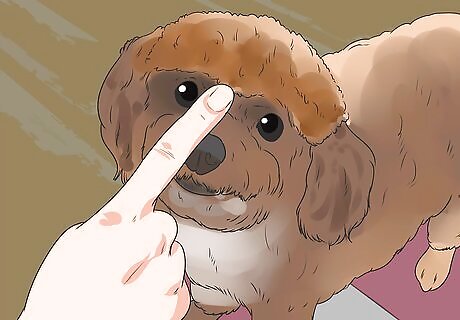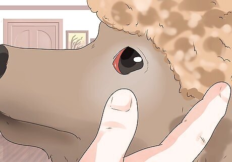 Pay attention to signs of pain near the eyes. Your poodle may be rubbing its eyes excessively with a paw or rubbing its face along the ground. It may also be keeping its eyes partially shut or completely shut. Another sign of eye discomfort is if the dog is unhappy if you try to touch its face near its eyes. The signs of discomfort can be very subtle and hard to read. They mostly show up in changes in temperament and activity.