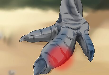 See if there’s any swelling in the joints, footpads, wattle, or face. Swollen joints or footpads are often a symptom of staphylococcus or fowl cholera. A swollen face or wattle can be present in a number of conditions, so it is not evidence for a definitive diagnosis, but can aid you in knowing that something’s wrong with the emu.