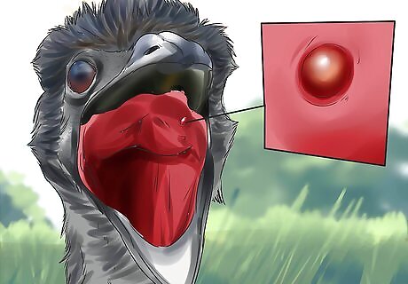 Check for diarrhea. Normal emu excrement is soft, but not runny or watery. Runny or water excrement, or diarrhea, is often a sign of disease in emu. While changes in diet will cause diarrhea, there are many diseases that may require treatment that also cause diarrhea. These include bacterial infections, avian influenza, fowl cholera, staphylococcus, as well as many other diseases that affect emu. You will need to see a vet or check for other symptoms to determine the cause of diarrhea. Many baby emu chicks will experience normal diarrhea. As long as they seem otherwise healthy, you don’t need to administer treatment. If the diarrhea is green or very watery, the emu might have Newcastle Disease or Chlamydiosis.