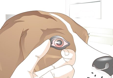 Look for red eyes. This is another sign that your dog's eyes are irritated. Your dog's eyes may become red due to an ingrown eyelid because the surface of the eye may be constantly rubbed by the eyelashes from the under-turned eyelid. This constant rubbing can even lead to corneal ulcers, which is when the clear surface of the eye is worn away and eroded permanently.