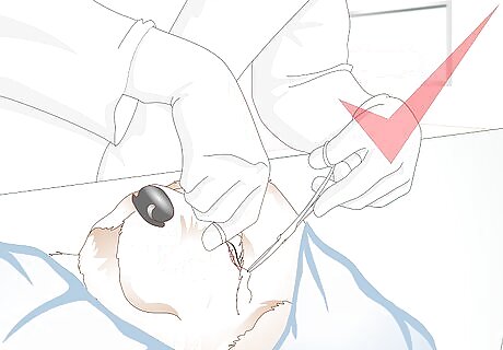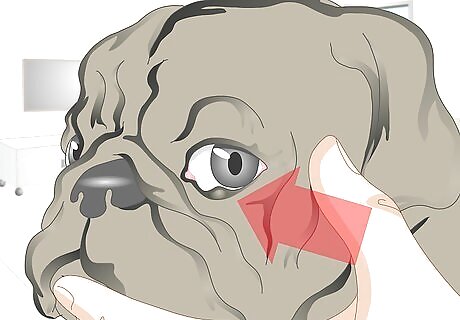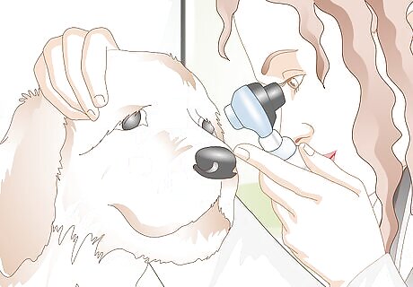 Take your dog to the vet. If you see any of the signs of an ingrown eyelid you should have your dog checked out by a vet. He or she will be able to assess and treat your dog's condition. Assessment is done by observation, both by looking at the dog with the naked eye, and by using the magnification of an ophthalmoscope to look closely at the leading edge of the eyelid. Some vets will double check their observations by putting a few drops of local anesthetic into the eye. This is because general eye pain can sometimes cause the dog to squint and, in some cases, cause the eyelids to appear as if they are ingrown. However, if the pain is removed and the eyelid still lies in an abnormal position, then it is confirmed that the entropion is due to extra skin, rather than muscular contraction due to pain.