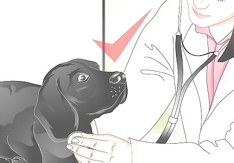 Have your vet examine your dog. Your vet will perform a physical examination. During the physical exam, describe the vomiting episodes in as much detail as possible: when your dog vomits, what the vomit looks like, and how long the vomiting has been going on. The more information you give your vet, the better able they’ll be able to diagnose your dog.