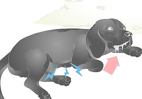 Detect pain or distress during vomiting episodes. Vomiting is not a pleasant experience for dogs. Often, abdominal pain is present when a dog is vomiting as bile can be irritating to the stomach lining. Below are signs of distress that your dog may have during a vomiting episode: Licking the lips Drooling Repeatedly swallowing Hard swallowing Stretching out