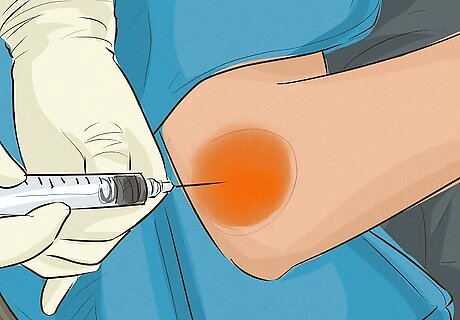 Opt for corticosteroids. Corticosteroids are a method of inflammation control (and subsequent pain relief) for those who cannot tolerate NSAIDs and/or Colchicine. Corticosteroids can be prescribed in pill form, or they can be injected directly into the affected joint (which is usually the better option, as you avoid the side effects that can come from taking them in pill form). An example of a corticosteroid is Prednisone. Corticosteroids are generally given in limited amounts, such as one (or minimal) injections into your affected joint, and/or a limited course of corticosteroids taken in pill form.