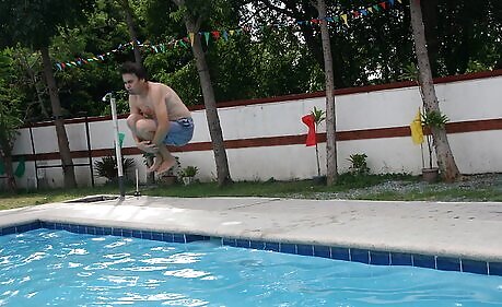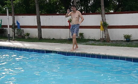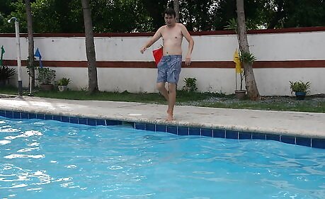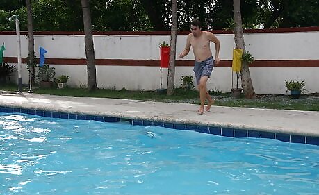 Observe the area. Walk back about 10 to 15 feet (3.0 to 4.6 m) from the pool. If the area is free from objects and people, back up away from the edge leading to the water as far as possible and take running start.